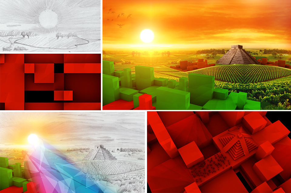 Design, illustration and 3d modeling of style frames for a mayan concept agency script