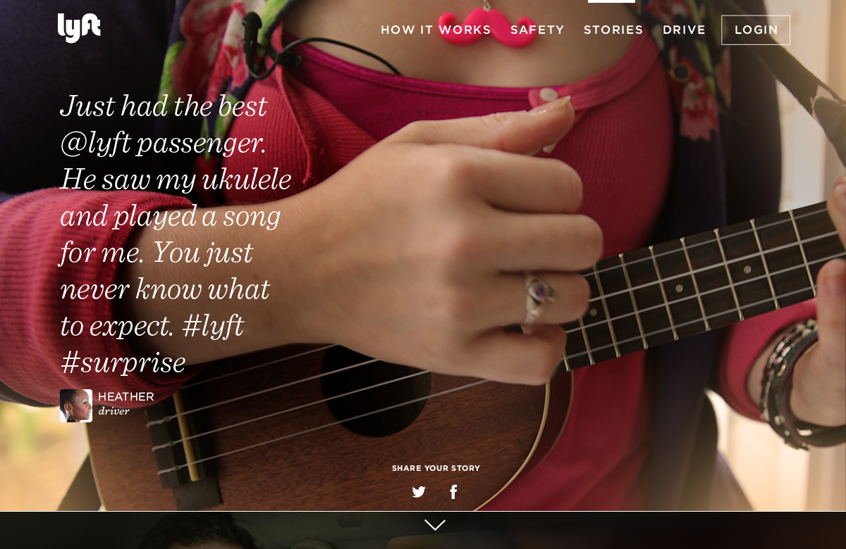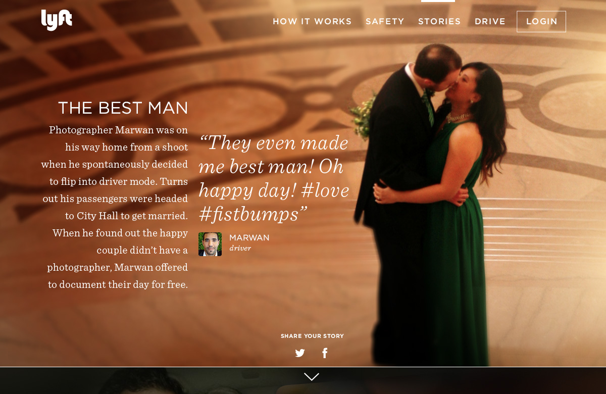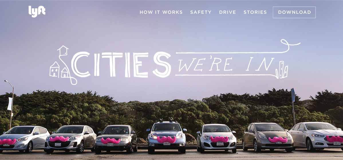 We must have done something right, cause we made that friendly vibe, and they came. I enjoyed the press we received, like this rando breakdown of our brand that referenced the stories page I designed and was so proud of; as well as the brand analysis comparisons that frequently popped up would always show this shot of the hipsters with my hand-drawn type juxtaposed with Uber's slick douchiness.
