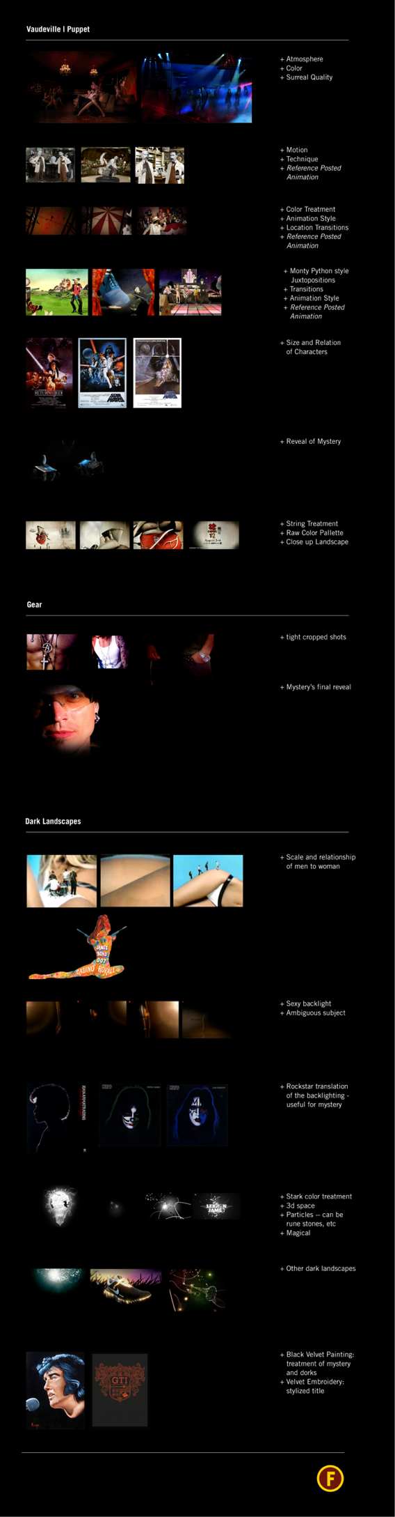 After skimming the book (I couldn't totally get through it) I came up with a few pitches to bring to life the story of this guy sheparding his sheep through the wilderness of women with his faithful wingmen. Chosen idea was based on black velvet paintings meet the 90's music video that had a huge Pamela Anderson with a band singing on her body. This being Mystery, however, I chose to make her a Real Doll style woman rather than an actual lady. Although given the low budget, cost probably also played into it as much as my feminist critique. I used Poser 3D software to create the woman, we shot mystery with his arm posed, and filmed all the guys in our office walking around to be filler for the scenes. I made many versions of the logo before we landed on this, and did the first pass at the animation, but after I left for another booking, another animator speeded it up and added some flourishes. Shown here is my version, not the final version.